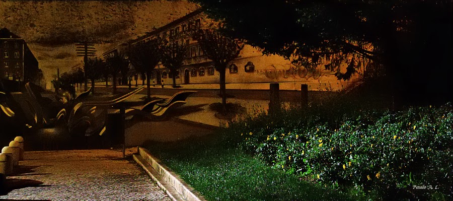 EliminarÀ excepção do passeio, relva e árvores, é tudo uma ilusão: é um mural muito bem pintado de uma Lisboa d'outras eras. À noite é surreal (mas atenção, não é propriamente uma rua recomendável à noite; como disse tive de lá passar para ir às festas)!