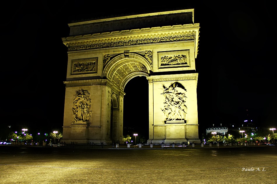 Confesso que conheço melhor Paris de dia do que Paris de noite. Mas vendo as suas fotografias, Paulo, nem sei bem de quais gosto mais. São todas deslumbrantes... Neste caso, porém, a minha predilecção vai para três: a primeira, claro, porque é magnífica a "Dame de Fer iluminada cor de ouro", e por causa daquela fantástica luz de fim de dia, que adoro, e a que eles tão apropriadamente chamam a hora "entre chien et loup." E depois os dois Arcos (du Carroussel et du Triomphe). Adoro o Arco do Triunfo às cinco da manhã, totalmente feérico, quase meio irreal.
